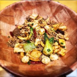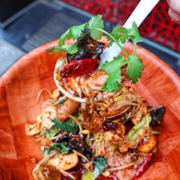 This is my favorite dry pot restaurant. Fans of Mala Project: please consider trying out this spot. Like many white Brooklynites, I was introduced to dry pot through Mala Project and was amazed. It turns out, dry pot is just delicious and Mala project is overpriced. Here, you select your ingredients from the bar in the back and a friendly employee builds your bowl for you. The meat items are priced by weight and there's a flat price for 5 vegetable items. I generally have gotten spicy level 3 as someone with medium spice tolerance, but I think on my next trip I will try 4, as 3 is only mildly spicy for me personally. The items all seem fresh and the seasoning is perfect. I genuinely prefer it to Mala Project and the price is much more reasonable. The bowl pictured was about $30 and fed two people (though I often eat the same about by myself and leave stuffed and satisfied.) The interior of the place is beautiful and all the servers I've encountered have been lovely. I will return here many times.